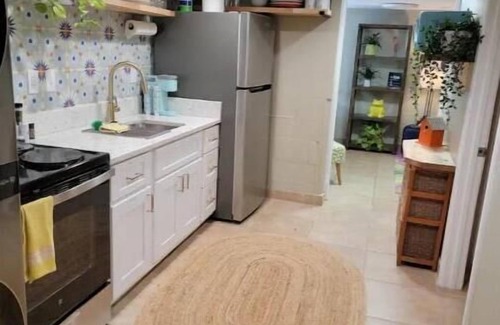 This unique place has a style all its own. Bright colors, super clean, pet friendly and ready for you. One bedroom with queen bed, fully stocked kitchen with stainless steel appliances including washer and dryer. Fully fenced back yard with covered patio entrance. One car driveway parking and plenty of street parking if you have additional vehicles. This Lower Level apartment is private, safe and is centrally located close to parks, coffee shops and fun.