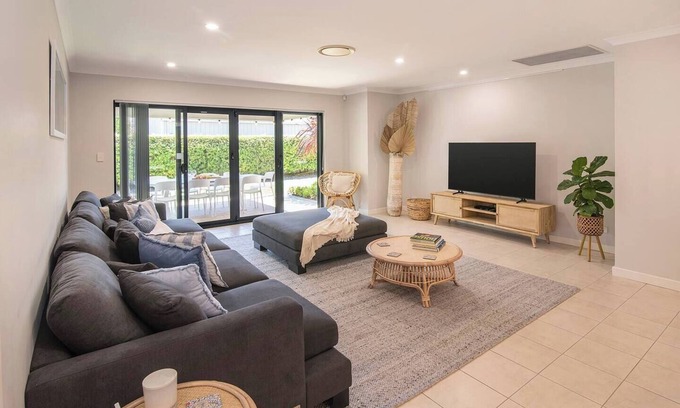 Discover this welcoming beachside home, thoughtfully designed to bring families and friends together. Step into the open-plan living area, curl up on the oversized sectional, and enjoy movie nights by the fireplace on cooler evenings. A second living room offers a relaxed retreat with leather sofas and bean bags—perfect for late-night entertainment.