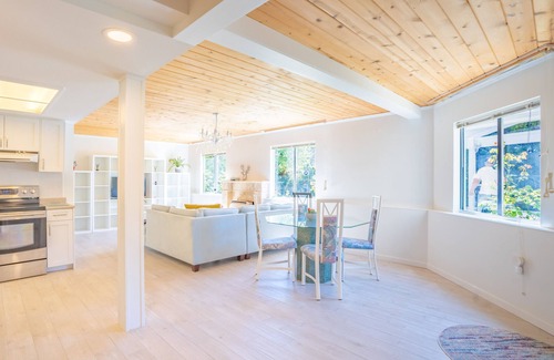 Relax in this fully renovated 2-bedroom suite in the prestigious Upper Delbrook area of North Vancouver. Perfect for up to 5 guests. This bright / south-facing ground-level suite features almost 1,000 SF, 2 large bedrooms facing a beautiful private backyard, 1 queen bed and 1 full bed, a bathroom with a bathtub and bidet, a Coffee Machine, a spacious living & dining area, and amenities like a hair dryer, washer/dryer, and WiFi. Enjoy a fully fenced, beautiful backyard to walk your pet or relax. Just a 1-minute walk to the bus stop and less than 5 minutes to restaurants, shops, coffeehouses, parks, and trails. Experience comfort and convenience in this prime location!