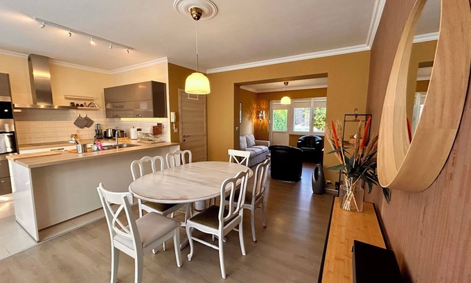 Cozy house in Zaventem, 5 minutes from the train station and 15 minutes from Brussels. Free parking available in front of the house’s garage. Three bedrooms with double beds (160 cm), bathroom with shower, fully equipped kitchen, bright living and dining room. Private garden with pergola, barbecue, and outdoor dining area. Supermarket within a 5-minute walk (Albert Heijn). Fast Wi-Fi, bed linen and towels provided. Ideal for discovering Brussels or relaxing after a flight.