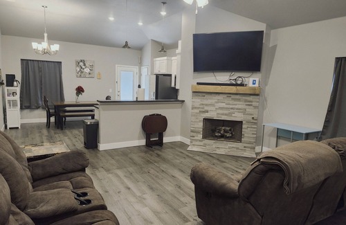 Located in Lubbock, this lovely house offers 4 bedrooms - 1 king bed and 3 bedrooms each having twin pop out trundle bed! With 2 bathrooms equipped with a hair dryer and bathtub, guests will feel right at home. The property also features amenities like gas stove, gas light fire place as well as a fire pit in the fenced off backyard, WATERSOFTNER SYSTEM throughout the house, AC, iron, and heating for a pleasant stay. We hope you'll enjoy your stay at our house. Doorbell camera at front door only to verify proper number of guests no audio recording enabled.