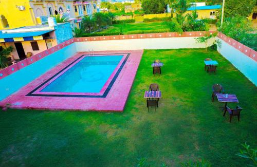 Marwar Haveli Pushkar. Is a recently renovated country house in Pushkar where guests can make the most of its pool with a view and garden. There's a private entrance at the country house for the convenience of those who stay. The country house features garden views, a picnic area, a 24-hour front desk, and free Wifi is available throughout the property. The country house will provide guests with air-conditioned units offering a wardrobe, a safety deposit box, a flat-screen TV, a terrace, and a private bathroom with a shower. There's also a dressing room and a seating area. At the country house, each unit includes bed linen and towels. The breakfast offers buffet, à la carte options and pancakes and cheese are being served. For guests with children, the country house offers an indoor play area, outdoor play equipment, and a baby safety gate. A bicycle rental service is available at Marwar Haveli Pushkar.. Popular points of interest near the accommodation include Pushkar Lake, Brahma Temple, and Varaha Temple. Kishangarh Airport is 24 miles from the property, and the property offers a paid airport shuttle service.