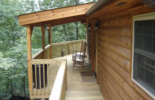 The deck expands from the front porch and is shaded by a hardwood tree's. This makes it even more pleasurable to spend many hours relaxing and and listening to nature.