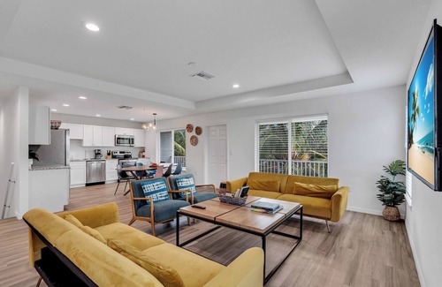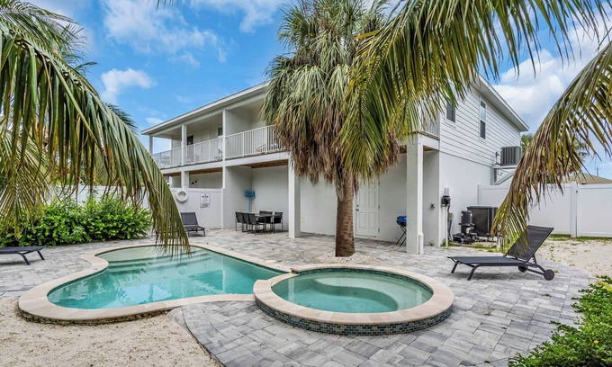 Modern retreat with private pool & hot tub, just minutes from Bradenton Beach and IMG Academy! This stylish 3BR home features sleek interiors, lush outdoor lounge areas, and all the comforts of home. Close to Anna Maria Island, Robinson Preserve, Riverwalk, and vibrant local dining. Ideal for families, beach lovers, and IMG guests seeking sun, sand, and resort-style relaxation in the heart of Bradenton.
