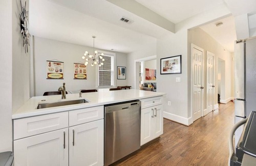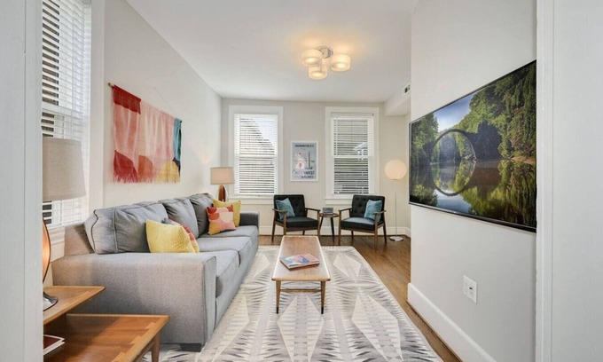 Ideally located within a 10 minute walk to the Columbia Heights metro, this 2,000 sq. ft. combined townhome boats two units just remodeled and tastefully furnished in a mid-century modern style. It's a fun and colorful space that is just a few minute metro, drive, or uber to all of DC’s main monuments. With popular bars and restaurants just a short walk away, this home’s 5-bedroom, 2.5-bath layout is ideal for families and groups of friends. Off-Street Parking Included!