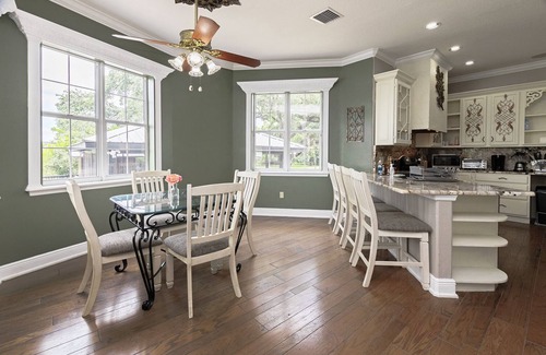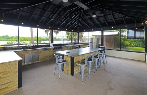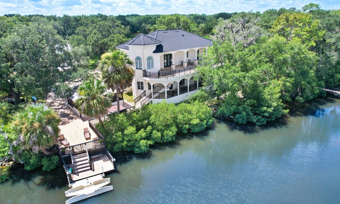 Massive Waterfront vacation villa with over 6000SF of living space fully remodeled house with new furnitures on a 4 acer fenced in property, Center of Tampa, very close to downtown Tampa. It has 7 in-suite bedrooms with king size beds and bathrooms attached plus 2 additional bedrooms in total 9 bedrooms & 10 bathrooms ,Large screened Outdoor Kitchen Fishing & Relaxation.