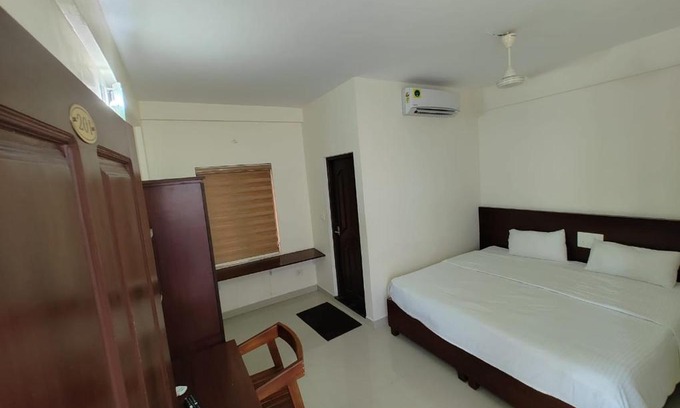Well located in the Kakkanad district of Kakkanad, Masterkey Deluxe Rooms is located 17 miles from Kochi Biennale, 11 miles from Cochin Shipyard and 3 miles from Wonderla Kochi. This 2-star hotel offers room service and luggage storage space. The property provides airport transportation, while a car rental service is also available. Guest rooms at the hotel are equipped with a seating area, a flat-screen TV and a safety deposit box. Featuring a private bathroom with a shower and free toiletries, rooms at Masterkey Deluxe Rooms also offer free WiFi, while some have a city view. All rooms will provide guests with a desk and an electric tea pot. National University of Advanced Legal Studies is 3.8 miles from the accommodation, while CUSAT is 5 miles away. Cochin International Airport is 16 miles from the property.