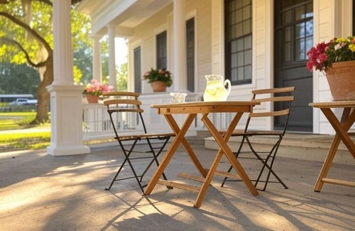 This 2,100+ sq ft home exudes Southern sophistication while delivering the functionality your organization needs. The open layout includes expansive living and dining areas, ideal for meetings, entertaining, or downtime. The standout front porch provides a welcoming space for informal gatherings or relaxation, bathed in natural light during the late afternoon. A fully equipped kitchen supports catering or team meals, with a dining table that seats 8. The house offers: