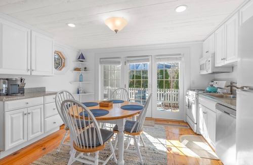 Escape to charming Maushop Village in Mashpee and immerse yourself in the beauty of this cozy beach house overlooking Nantucket Sound. Experience the nostalgia of Nantucket architecture with summer breezes, blue hydrangeas, white picket fences, and pink and red geraniums in window boxes that create an unfussy, and quintessentially Cape Cod atmosphere.