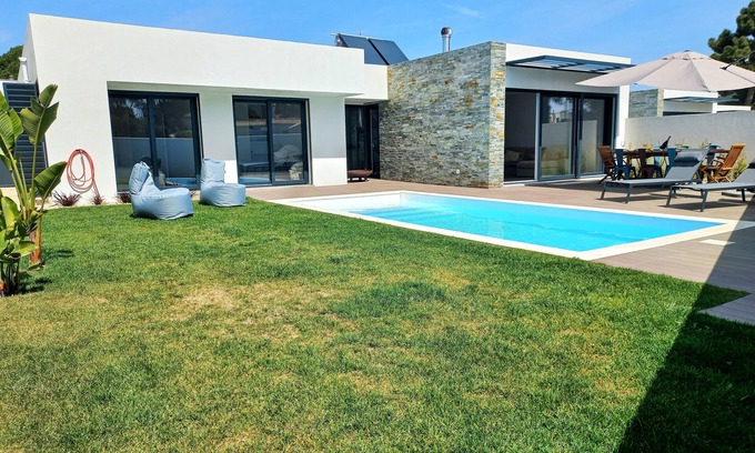 A fantastic new Villa V3 in Aldeia Do Meco with a private Pool around 10min. walking distance from the beach.