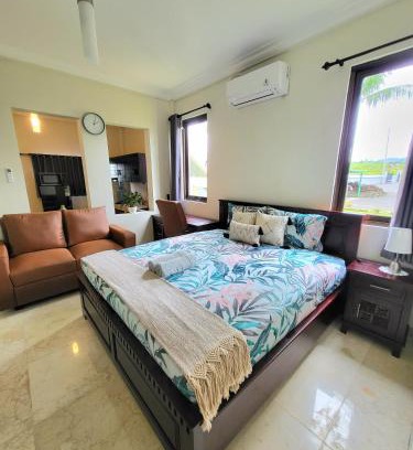 Medewi Manor in Airsatang provides accommodations with water sports facilities, an outdoor swimming pool, and a garden. This condo hotel provides free private parking, free shuttle service, and free Wifi. Outdoor seating is also available at the condo hotel. Some accommodations include a balcony and a seating area with flat-screen TV, as well as air conditioning. At the condo hotel, all units come with a private bathroom. Yeh Sumbul Beach is a few steps from Medewi Manor. Banyuwangi International Airport is 52 miles away, and the property offers a paid airport shuttle service.