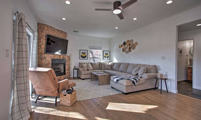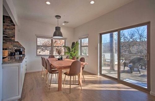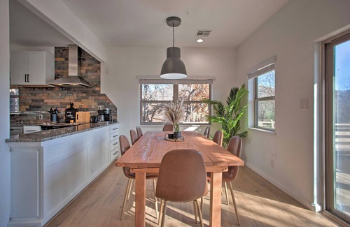 For the perfect blend of nature and in-town dining and shopping, look no further than this beautiful Medicine Park cabin. The 3-bedroom, 2.5-bathroom vacation rental is equipped with amenities for all ages, including a kid's play corner, Smart TV, a fully equipped kitchen, and ample outdoor entertainment space! When you’re not admiring the tree-speckled views directly from the deck, venture out for a day on the water at Lake Lawtonka, where you can fish, swim, boat, and more.