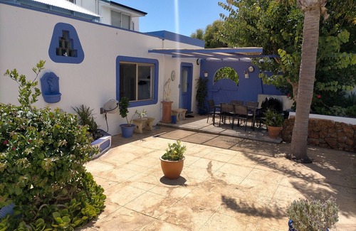 Enjoy your own large private garden court-yard and BBQ facilities. In the enclosed courtyard and relax under a palm tree. At the side of your own driveway... sit at a table and chairs under the Olive Trees. Sleeps max 6 persons.