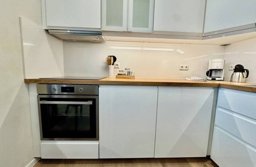 A living room and a dining area are featured at this 1-bedroom, 1-bathroom rental. Connect to the WiFi, or get cozy in front of the TV. The kitchen is equipped with an oven, a stovetop, and a refrigerator, as well as a coffee maker and cookware. And you can even travel light because you'll have access to laundry facilities. Other amenities include bed sheets and heating.