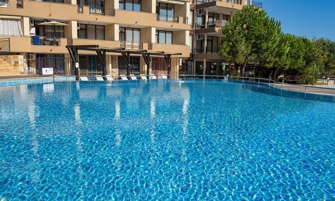 The Luxor complex, which is eagerly chosen by families, is located between Sunny Beach and the resort of Sveti Vlas. Is the perfect choice for those who want to slow down for a moment and relax. For the leisurely afternoons, the presence of the pool is great, including a children's pool with free sunbeds and umbrellas. Visitors to the complex can use the restaurant on site as well as the convenient location for daily shopping. Just 50 meters from the complex, across the street, there is a large Mercury supermarket where you will find everything you need while you relax.