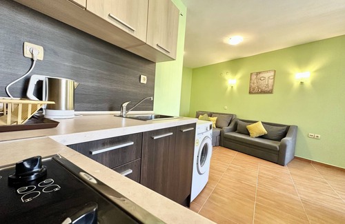 The Paradise Dreams family complex located in Sveti Vlas, 300 meters from the beach, perfect for a great holiday! Stylish studio with impressive views of the Paradise Dreams complex. It has a well-stocked kitchen, flat-screen TV and bathroom with shower. An ideal place for a comfortable stay for lovers of Sveti Vlas.