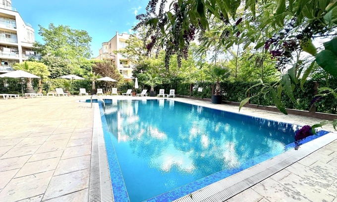 Villa Aria is a charming complex located in the picturesque town of Sunny Beach, Bulgaria. Known for its unique atmosphere and comfortable facilities, the complex offers an unforgettable stay for every type of traveler.Located just a few minutes walk from the sandy beach, Villa Aria provides the perfect opportunity to relax and unwind by the Black Sea. The complex consists of beautifully furnished apartments that meet the needs of both single travellers and families with children.Guests of Villa Aria can enjoy a variety of facilities such as a swimming pool surrounded by greenery, a children's playground and a barge near the complex. Burgas Airport is about 30 minutes' drive away. Luna Park is only a 10-minute drive away. The water park is also nearby