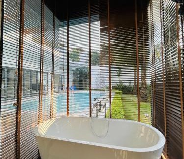 Food & DrinkTea/Coffee makerBathroomTowels/Sheets (extra fee), Bathtub, Hairdryer, Toilet, Private bathroom, Shampoo, Toilet paper, Body soap, Bathtub or shower, Shower, Guest bathroom, Free toiletries, TowelsMedia & TechnologyFlat-screen TV, TVGeneralAir conditioning, Key access, Key card access, Fire extinguisher, Iron, Smoke Alarm, Private entrance, CarpetedKitchenDryer, Cleaning products, Stovetop, Coffee machine, Kitchenette, Washing machine, Dishwasher, Electric kettle, Toaster, Kitchen, Oven, Dining table, Microwave, Wine glasses, Refrigerator, KitchenwareOutdoorsOutdoor furniture, Outdoor dining area, Balcony, Patio, Private pool, TerraceLiving AreaDesk, Dining area, Sitting areaBedroomLinens, Extra long beds (> 6.5 ft), Wardrobe or closetViewView, Pool view, Garden viewServicesWake-up serviceBuilding CharacteristicsPrivate apartment in buildingRoom AmenitiesNon-feather pillow, Drying rack for clothingPool and SpaPool towels, Saltwater pool, Infinity PoolPhysical distancingSingle-room AC for guest accommodationCleanliness & disinfectionHand sanitizer |