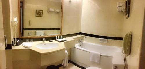 Food & DrinkBottle of water, Tea/Coffee makerBathroomShampoo, Body soap, Toilet, Shower cap, Bathtub or shower, Bathtub, Conditioner, Bathrobe, Toothbrush, Free toiletries, Shower, Walk-in shower, Towels, Hairdryer, Toilet paperGeneralAir conditioning, Safe, Interconnecting room(s) available, Smoke Alarm, Fire extinguisher, Carpeted, Key card accessMedia & TechnologyTV, Flat-screen TV, TelephoneKitchenElectric kettle, RefrigeratorLiving AreaSofa, Sitting area, DeskServicesExecutive lounge access, Wake-up serviceBedroomWardrobe or closet, Linens, Childrens' cribsViewCity viewAccessibilityAccessible by elevator, Upper floors accessible by elevatorRoom AmenitiesSofa bed, Drying rack for clothing, Clothes rack, Adapter, PajamasPool and SpaPool towels |