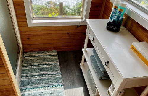 Sea Cloud Cottage is a studio with a kitchen and bathroom. The private deck has a hot tub, and parking is just across the quiet street.