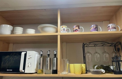 The kitchen comes fully equipped with modern appliances and all the essentials you need to prepare meals easily, whether it’s a quick snack or a full dinner.