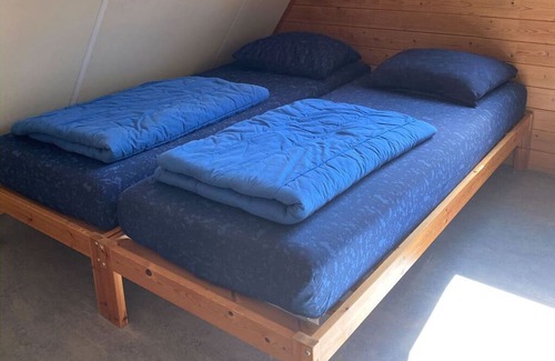 Particular attention is paid to the design at Eureka. The holiday home is individually furnished. This gives the holiday home its distinctive charm. The house has an entrance area, shower and toilet, central heating, kitchen with a combination microwave device, a living area with cable television and two bedrooms. WLAN on request Holiday home for 1 - 5 people, but max. 4 adults. Ferienpark Eureka is a clear park. The house borders on a large lawn. So they always have their playing children in view while they are sunbathe in the deck chair.