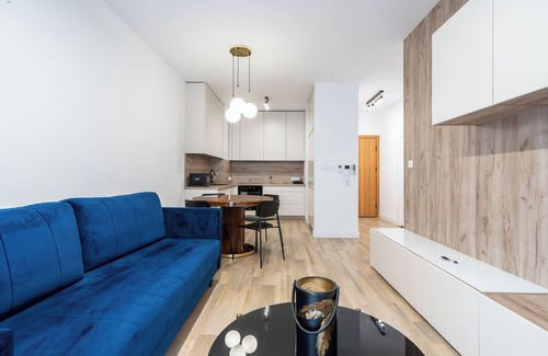 Meteorologów Comfy Apartment is a stylishly furnished apartment, featuring a living room with a kitchenette, a bedroom with a comfortable king-size bed, a bathroom, and a balcony where guests can relax and enjoy their morning coffee or a glass of wine in the evening. Guests have various amenities at their disposal, including free WiFi, a washing machine, a hairdryer, a dishwasher, an oven, a fridge with a freezer, a microwave, a toaster, and kitchen accessories. Guests also have a parking space in the underground garage. The apartment also has air conditioning, which provides extraordinary comfort, especially during hot days.