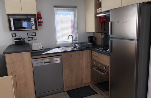 Guest accommodations at MH-4-6 pers-2ch-1sdb-terrasse 18 m2 tout confort domaine de kerlann (456) offer safes and coffee/tea makers. Rooms open to patios. Accommodations are furnished with sofa beds and dining tables. Kitchens offer refrigerators, stovetops, microwaves, and separate dining areas.