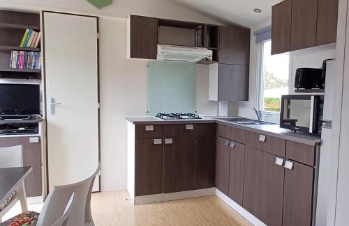 1.5 miles from Plage du Casino in Houlgate, "MHSweetHome" Piscine wifi privé TV 3 chambres 6 pers 32m2 offers accommodations with access to an open-air bath. Guests may go for a swim in the heated pool. There's a children's playground and guests have access to free Wifi, free private parking, and an electric vehicle charging station. Providing a terrace and garden views, the chalet includes 3 bedrooms, a living room, satellite flat-screen TV, an equipped kitchen, and 1 bathroom with a shower. Guests can take in the ambience of the surroundings from an outdoor dining area. The accommodation is non-smoking. Guests can eat at the on-site family-friendly restaurant, which is open for dinner. For guests with children, the chalet provides an indoor play area, a baby safety gate, and a kids' club. A water park, casino, and kids pool are available at "MHSweetHome" Piscine wifi privé TV 3 chambres 6 pers 32m2, while guests can also relax in the garden. Cabourg Casino is 3.6 miles from the accommodation, while Cabourg Racecourse is 3.8 miles away. Deauville - Normandie Airport is 14 miles from the property.