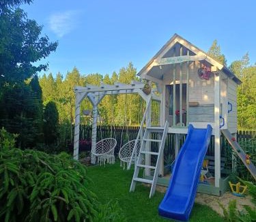 Miętowy domek is located in Jagodne, just 27 miles from Tropikana Aqua Park and 27 miles from Sailors' Village. This property offers access to a terrace, free private parking, and free Wifi. On clear days, guests can head outside to enjoy the vacation home's outdoor fireplace or simply kick back and relax. The air-conditioned vacation home consists of 1 bedroom, a living room, a fully equipped kitchen with a toaster and a coffee machine, and 1 bathroom with a shower and a hair dryer. Towels and bed linen are available in the vacation home. This vacation home is allergy-free and soundproof. The area is popular for walking tours and bike tours, and free use of bicycles is available at the vacation home. Outdoor play equipment is also available at Miętowy domek, while guests can also relax in the garden. Talki Golf Course is 29 miles from the accommodation. Olsztyn-Mazury Airport is 50 miles from the property.