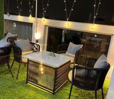 Food & DrinkTea/Coffee maker, Minibar, Bottle of waterBathroomTowels, Free toiletries, Toilet paper, Private bathroom, Bathtub or shower, Shower, Toilet, BathtubMedia & TechnologyFlat-screen TV, TVGeneralKey access, Lockers, Heating, Air conditioning, Key card accessKitchenKitchenware, Kitchen, Dining table, Refrigerator, Electric kettleViewView, City viewServicesWake-up serviceBedroomWardrobe or closet, LinensOutdoorsTerraceAccessibilityEntire unit wheelchair accessible, Accessible by elevatorCleanliness & disinfectionHand sanitizer |