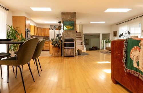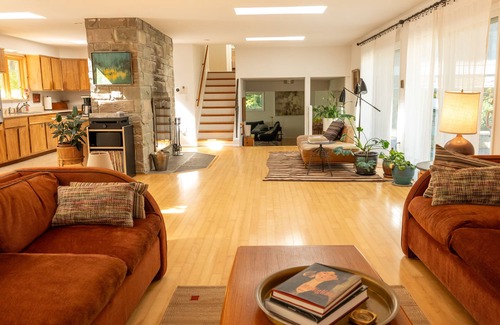 Spread out and relax in the roomy 1960's layout fitted with vintage art and furniture.