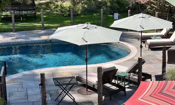 Experience the Catskills in our mid-century home located in this hamlet of Woodstock. Close to downtown to enjoy Woodstock's music and art heritage - yet far enough to enjoy privacy and nature. The property boasts a forested acre, pool, stream, fire pit, original art and nearby hiking trails and ski mountains. Inside enjoy crisp, modern comforts and plenty of space for spreading out. It's a one-of-a-kind upstate vacation setup for couples and families all year round.