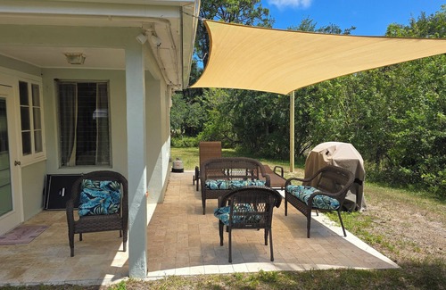 It's just 7 miles to the beach, 30 minutes to Cocoa Beach, a few minutes to I-95, lots of dining options, Melbourne Square Mall, The Henegar Center for the Arts, FIT, Melbourne Airport, 2 movie theaters, lots of shopping, etc. You will find residents of the village out and about with their dogs, enjoying the beautiful trees, birds and tortoises. Nature lovers will appreciate the bird-watching (bald eagles, hawks, owls, and swallow tailed kites abound). Many wild rabbits and the back yard has 4 gopher tortoise holes, so they are out and about during the day as well. (They are a federally protected animal, so don't disturb/touch them.)