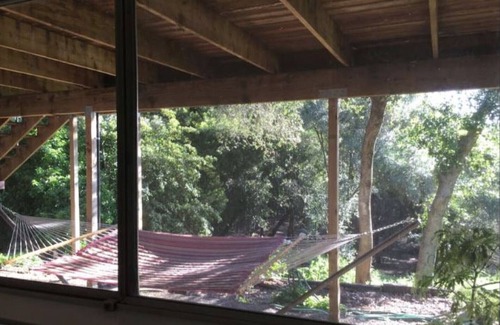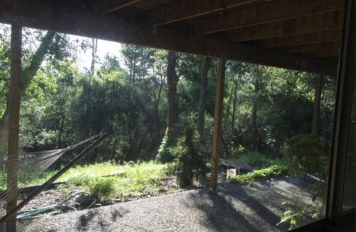 You have your own patio that stretches the length of the house and includes a hammock, garden dining and views to the expansive lot around. The home is newly remodeled with concrete floors, new interior paint, and modern furnishings. Turkey, deer and squirrels love to come up to the patio and say hello.
