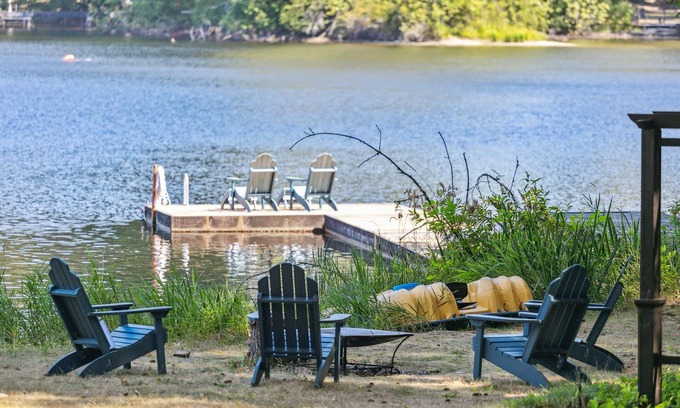 For outdoor enthusiasts, the delights continue. Your private beach and dock beckon for swimming, kayaking, or soaking up the sun. Kids will delight in the charming playhouse nestled amongst the trees, complete with a slide for endless fun.