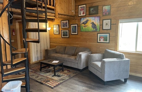 The Midnight Sun Cabin is our largest cabin, located off site on Midnight Sun Trail. You can still enjoy a "cabin living" experience with a little more room and conveniences for you and your loved ones.