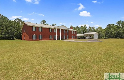 Located between Richmond Hill, Fort Stewart, Hinesville, and Midway (and only a 40-minute drive from downtown Savannah), enjoy what this 7-bedroom estate known exclusively as Midway Manor has to offer. With 4 queen beds, 5 sofa beds, 5 king beds, 2 bunk beds, and 3 cribs (pack-n-plays), there's plenty of room for even the largest of family reunions or private corporate events and wedding parties. With over 9,000 sq. ft, the property boasts incredible common areas such as a massive formal dining room, comfortable expansive living room, breakfast area, fireplace reading, a massive office area on the upstairs landing, a gym/yoga exercise area and den multipurpose playroom, and a backporch that can entertain the largest of barbeque happenings.