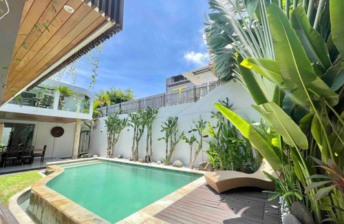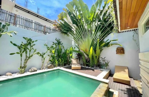 Forget your worries in this spacious villa in the heart of Legian. Private pool and open kitchen with dining room overlooking the pool.