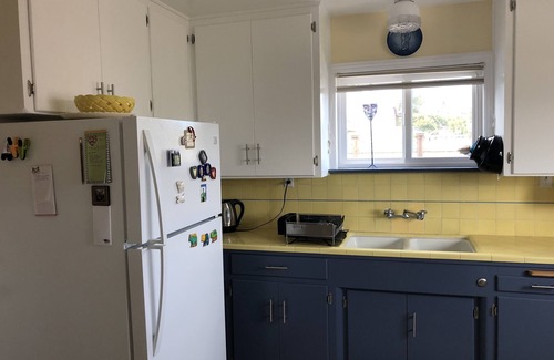 In a quiet corner of Baywood Park sits a cozy home near many prime Central Coast attractions such as, Edna Valley and Paso Robles vineyards, the ocean side cliffs and mountain vistas, and close to Montana de Oro State Park, the miniature old trees and board walk in the Elfin Forest, an Audubon overlook, San Luis Obispo, Cambria, Hearst Castle, fishing, kayaking to the sand spit or along the bay and harbor, walking the quiet neighborhood streets and the many local trails, etc. The cottage is located across the street from the Morro Bay estuary with access just a few feet away. It's a short walk to old downtown Baywood Park with its Ale House, fresh bakery, farmers market, cafes and fine dining. For shopping enthusiasts, spend a day in Cambria or San Luis Obispo, which are a short drive away and support thriving restaurants and stores. Rent this home with a sense of humor as a giant rooster sits in the front yard ready to do battle with the bronze Los Osos bear next door. Wild flowers fill the yard in the spring. It's a restful and restorative location that has served us well for many years.