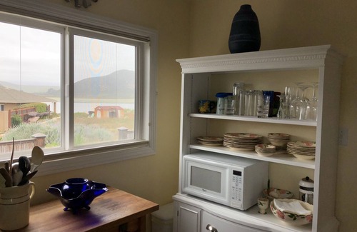 After WWII, my Aunt Millie (a nurse during the war in the Pacific) moved an 800 square foot cottage down to the waterfront, pioneering the community of Baywood Park. She placed her home in the middle of sand dunes across from the estuary and had the help of my grandfather and uncle making a gem of a cottage. Aunt Millie's great nephew built the central enjoyable feature of the home - the wood deck overlooking the bay. This is the favorite feature of the home for outdoor living. It overlooks the estuary, the changing tides and comings and goings of a great many birds. During the migratory season, wake up to the cooing of the birds on the bay.