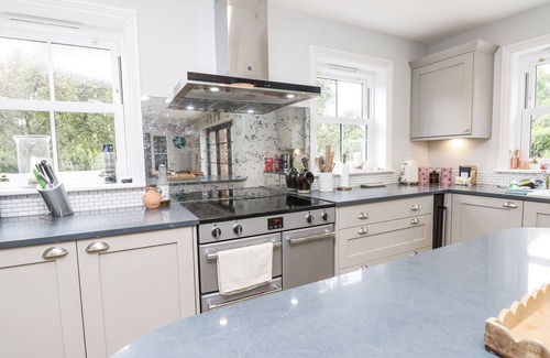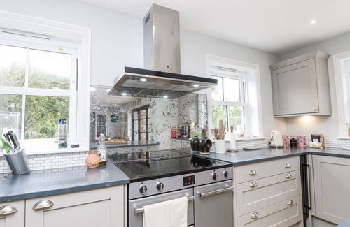 Amenities: Gas central heating. Underfloor heating. Range style fan electric oven with five ring induction hob, microwave, fridge/freezer, dishwasher, washer/dryer, kettle, toaster. Smart TV, WiFi. Fuel, power, and starter pack for woodburning stove inc. in rent. Bed linen and towels inc. in rent. Highchair and stairgate. Off-road parking for 4 cars. Enclosed garden with lawn, patio, and furniture. One well-behaved dog welcome. Sorry, no smoking. Shop 2.8 miles, pub 0.6 miles, beach 1.1 miles. Note: Good housekeeping bond of £500