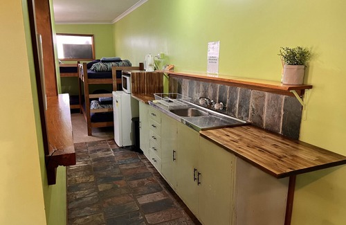 GeneralNumber of living rooms 0, Electric kettle, Bed count minimum 8, Kitchenette, Number of bedrooms - 1, Microwave, Shower only, Number of bathrooms - 1, Mini-fridge, Cookware, dishware, and utensils, No rollaway/extra beds, No cribs (infant beds), Bed count maximum 8, Private bathroom (not in room) |