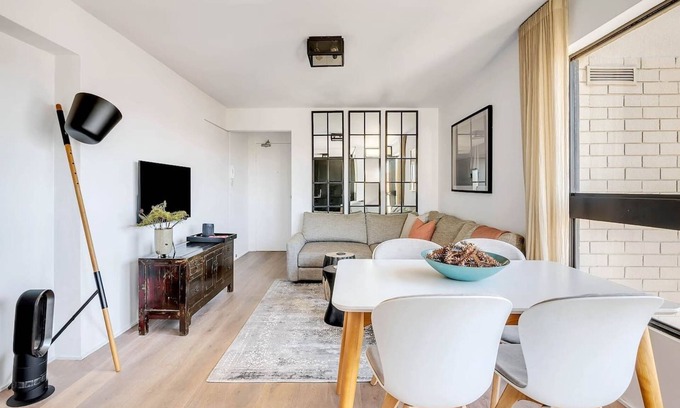 Framing spectacular Sydney Harbour views, this premium apartment couples an unbeatable city fringe address with gorgeous Scandi-style interiors. It has been beautifully renovated with designer finishes and state-of-the-art appliances to create a luxurious home away from home. Enjoy a sunny balcony, smart TV, two premium queen bedrooms, internal laundry and parking. Then, step out and experience vibrant Potts Point, with its notable fine dining, boutique shops and picturesque streetscapes.