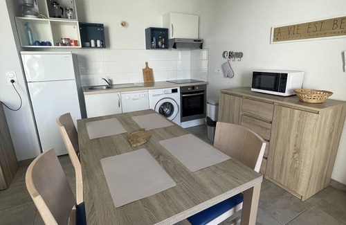 Mini villa 55 m2 with terrace equipped 16 m2 (gas barbecue, table and chair, parasol and deckchair). Corner living room Tv corner cooks, room with bed doubles 160 and a room with single beds 90 rapprochables. Bathroom and toilet separates. Heated pool from April to October 28 'shared green spaces numbered parking space, secure residence. Residence located on the heights of Bonifacio surrounded by the maquis.