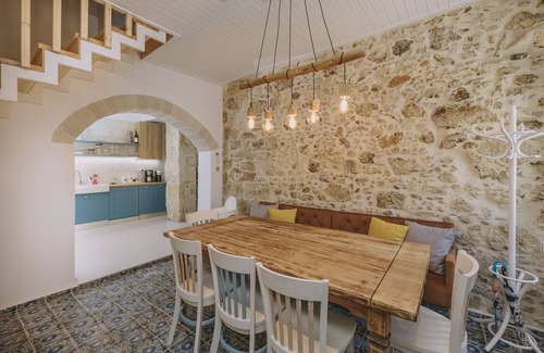 Minoos Residence (139 m2) house located in an alley central to the old town. It is not accessible by car but the closest accessible point to stop and drop off your suitcases is only 60 meters away.