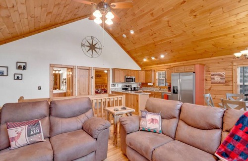 Experience the refined charm of Soco Serene Cabin, an exquisite log retreat nestled in the heart of Maggie Valley. This stunning cabin accommodates up to 10 guests and boasts a hot tub, mountain views, and a cozy fireplace. Indulge in the game room featuring a convertible pool table, darts, and more.