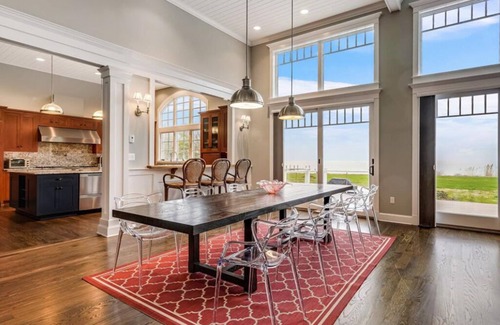 The ideal open-design floor plan concept features a sprawling interior with a formal dining room, expansive great room, pool table with bar, first-floor and second floor master bedrooms, flow-through living area and a home gym. No expense was spared in the chef-inspired kitchen that has been beautifully updated and boasts Viking appliances, granite countertops, an oversized kitchen island and a kitchen table that seats 10. All bedrooms offer picture perfect water views and were designed for relaxation. 4 out of the 5 bedrooms also offer a private master bathroom.