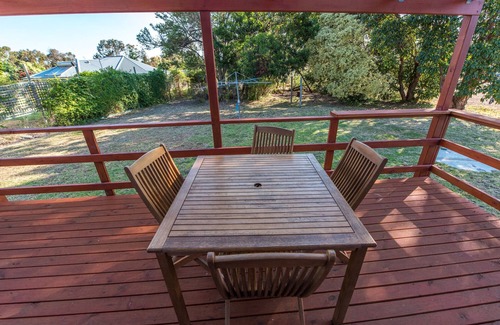 This cozy beach cottage is on a large block, set within the rain forest of Denmark. It is within walking distance of the beach and Wilson's Inlet. Minutes from the all weather boat ramp which also has plenty of room for car parking, and fish cleaning facilities. It would be the rare occasion when kangaroos don't entertain on the golf greens which are also close to the tennis courts. Kayaking on the Denmark River is another fun activity.
