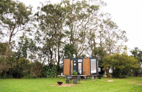 A cozy 139-square-foot tiny home with abundant natural bushland, easy access to water, split air conditioning, a kitchenette, cooking equipment, and excellent bathroom facilities. These amenities include an eco-friendly cassette toilet with a removable waste holding tank, hand basin, and gas-heated shower—making it a perfect choice among relaxing holiday homes.
